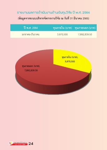 (ข�อมลัจิากระบบบริหารจิดุการงานวิจิัย ณ วันที่� 31 มีนาคม 2565)