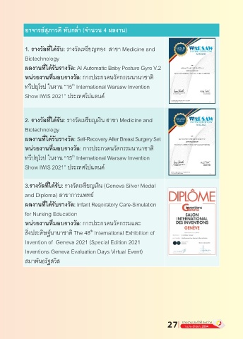 2. รางวลัที่�ไดุ�รับ: รางวัลเห็รียญเงิน สาขา Medicine and